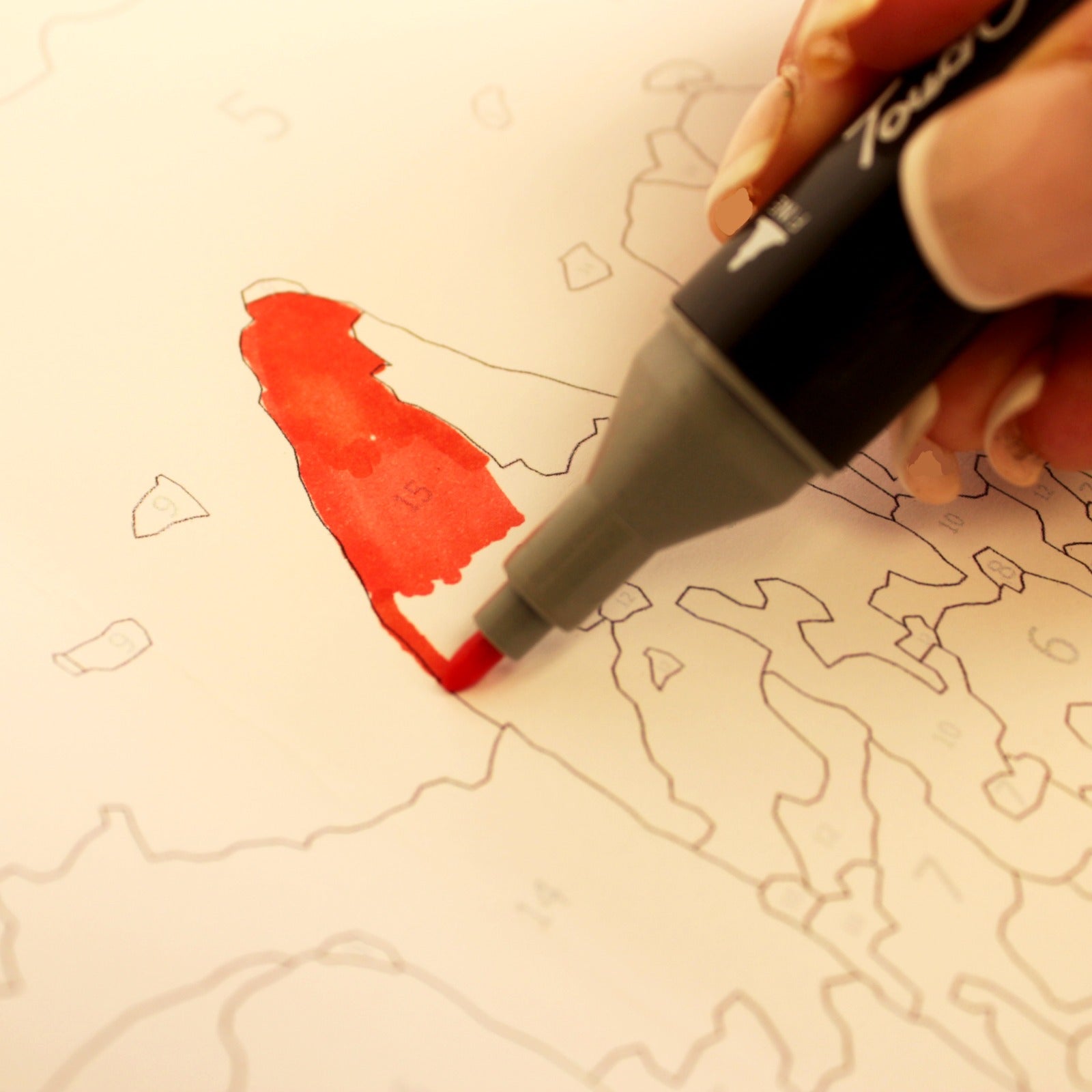 Tu momento creativo listo para empezar.Cada kit incluye una lámina impresa en alta definición y un set de marcadores dual-tip diseñados para pintar con precisión, rellenar rápido y disfrutar mientras ves cómo tu obra toma vida paso a paso.Ideal para principiantes y para quienes buscan una actividad relajante, entretenida y con un resultado espectacular.